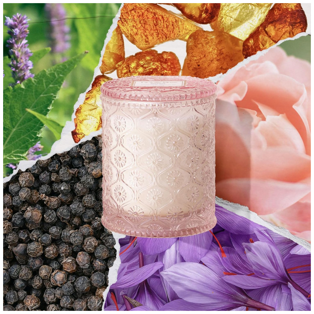 Vela Perfumada LA JOLIE MUSE Santal Rose Saffron, Rose Leather 6 oz Cera de Soja Natural 40 Horas de Queima Limpa Presente Pronto para Anfitriões e Re