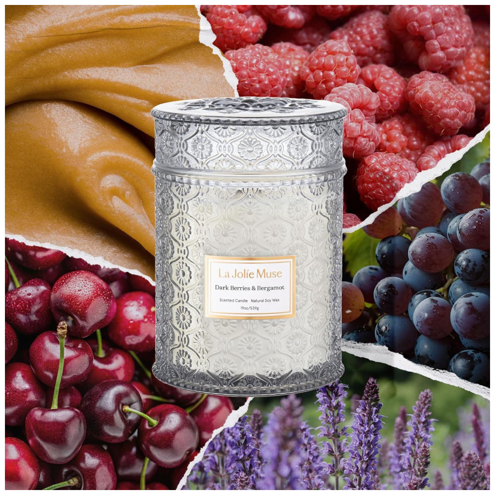 Vela LA JOLIE MUSE Dark Berries Bergamot – 539 g – 90 Horas de Queima Limpa – Cera de Soja Natural – Elegante para Anfitriões e Decoração Doméstica
