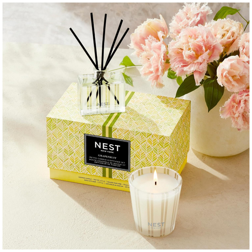 NEST New York Conjunto de Vela Perfumada Petite 127,57 g e Difusor 38,44 ml, Vidro Reutilizável Vegano, Sem Crueldade – Grapefruit