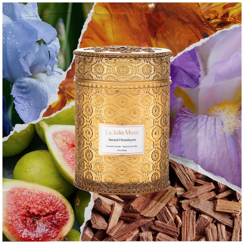 Vela Perfumada de Âmbar e Sândalo LA JOLIE MUSE – Vela Santal Himalayen 170g de Luxo de Soja, Queima Limpa e Duradoura – Presente Pronto para Anfitriõ