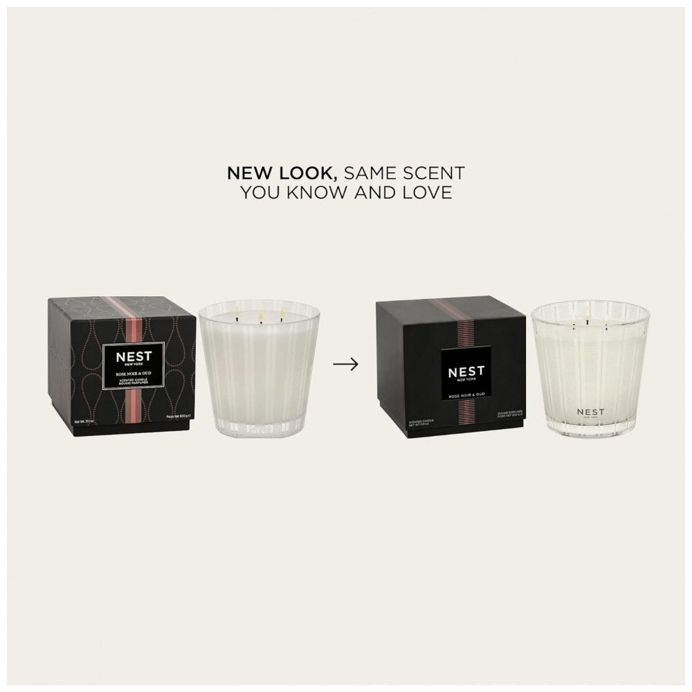 Vela Perfumada NEST New York de 3 Pavios, Rose Noir Oud 21,2 oz – Queima por Até 100 Horas em Recipiente de Vidro Reutilizável
