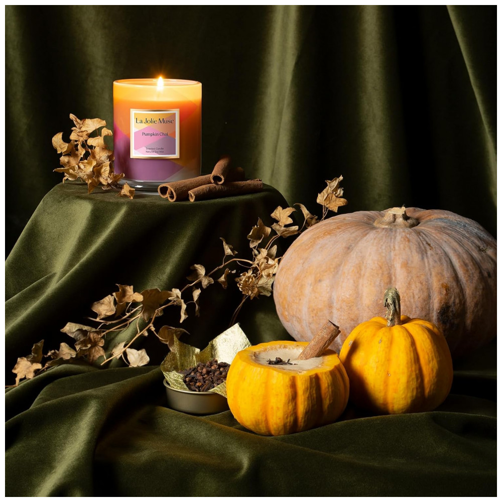 Velas de Outono LA Jolie Muse, Vela Perfumada de Abóbora Chai, Vela de Soja Natural, Presente de Vela de Outono, Velas de Luxo para Presentear Mulhere