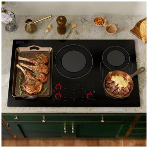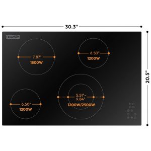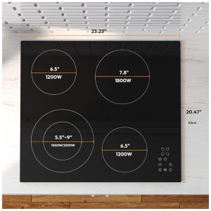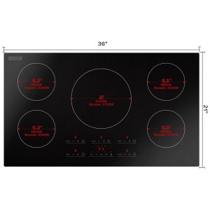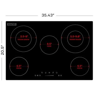 Cooktop elétrico radiant 90cm Empava 5 zonas vidro preto 2 zonas duplas aquecimento 7700W 220V