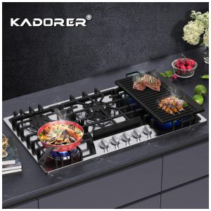 Cooktop a gás 5 bocas Kadorer inox escovado embutir com chapa reversível conversível GN/GLP 110V