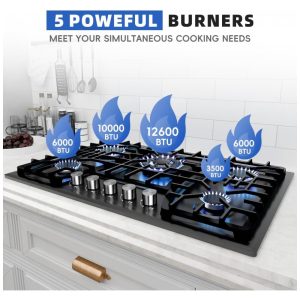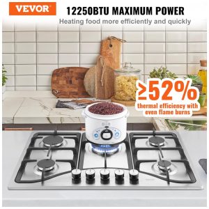 Forno cooktop a gás 5 bocas Deli-Kit inox escovado embutir queimadores triplos e selados 110V