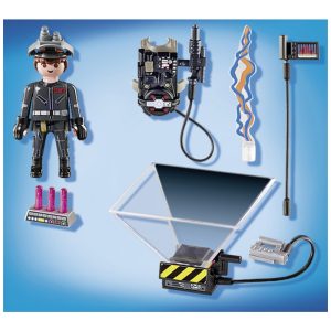 Playset Playmobil Ghostbusters Egon Spengler com armadilha de fantasma e cone holográfico