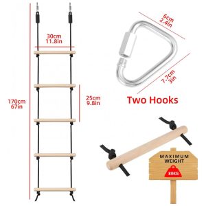 Escada Balanço para Crianças Ayipaqen 5 Degraus Preto – Capacidade 120 kg com Ganchos