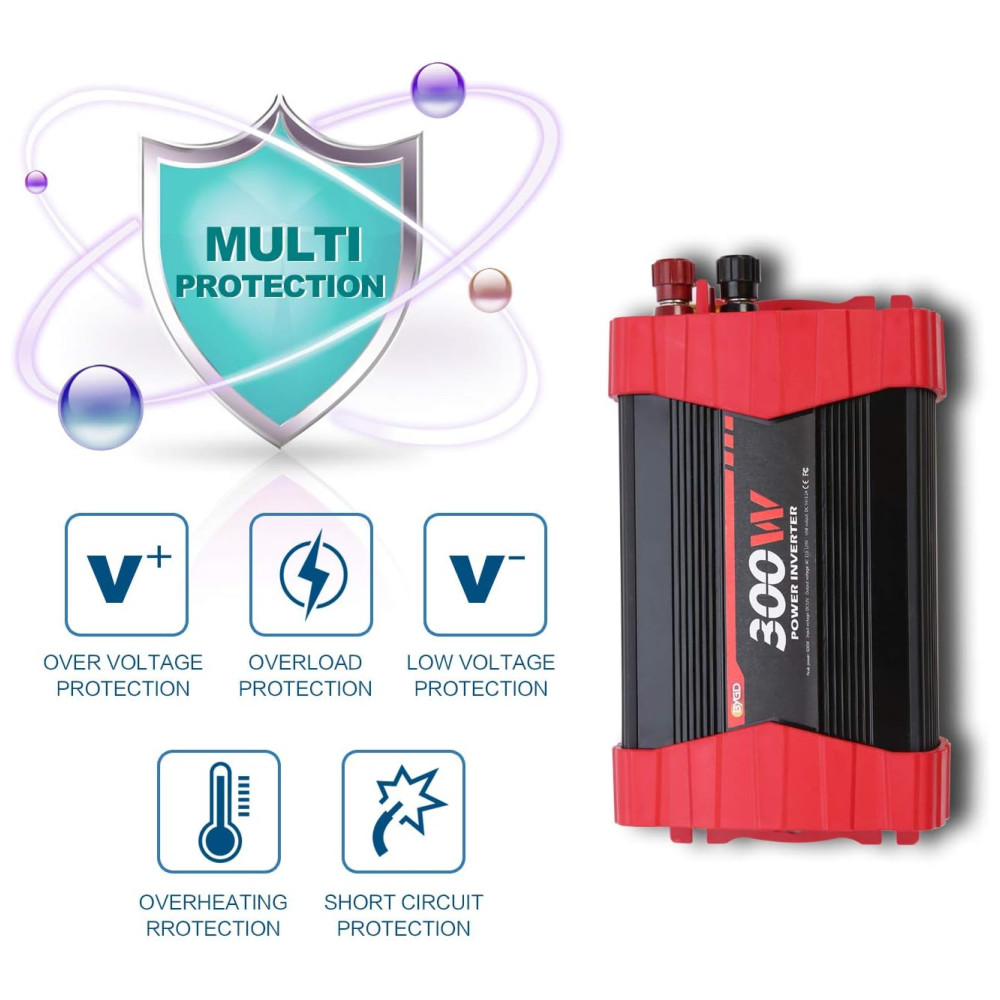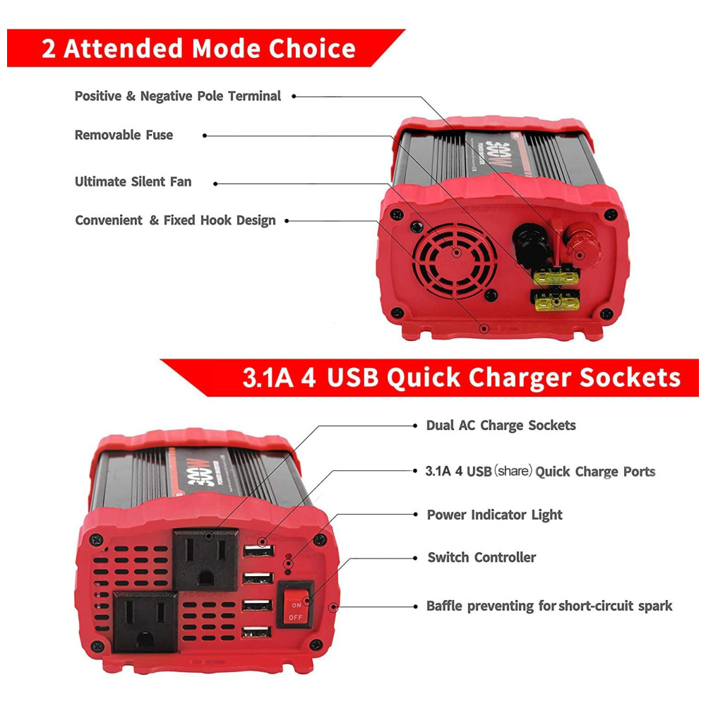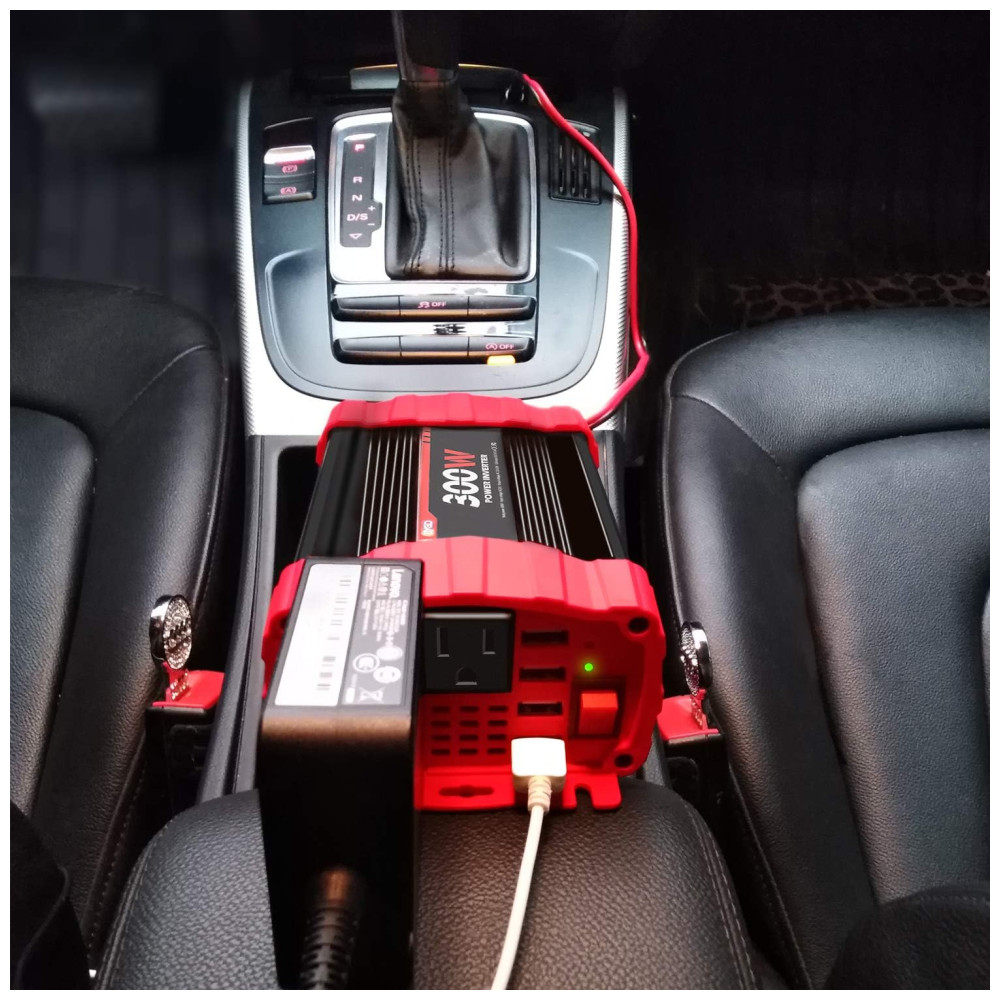 300W Car Power Inverter DC 12V to AC Converter Dual Outlets with 3.1A 4 USB Ports Car Charger Adapter 110v BYGD A300W 500W Vermelho
