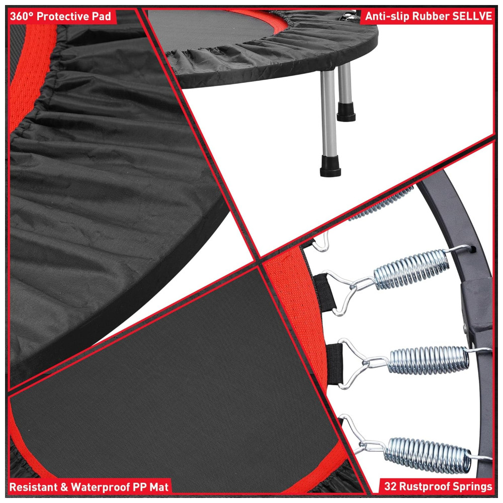Seu tamanho conveniente permite carregá -lo de um ponto para outro, sem qualquer trampolim de qualidade Alta, este trampolim pesado tem uma construção durável e pode suportar até 149