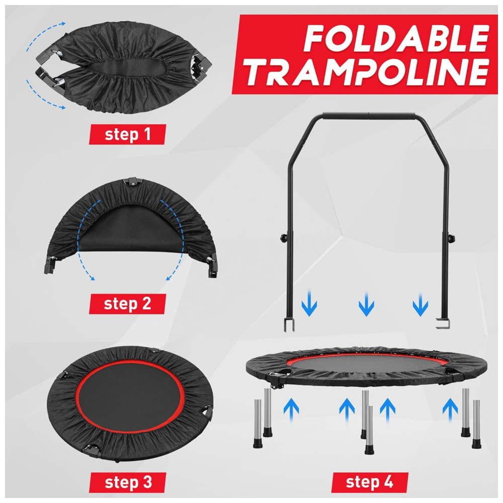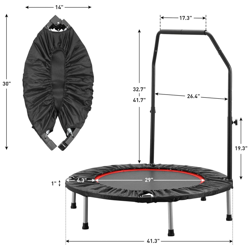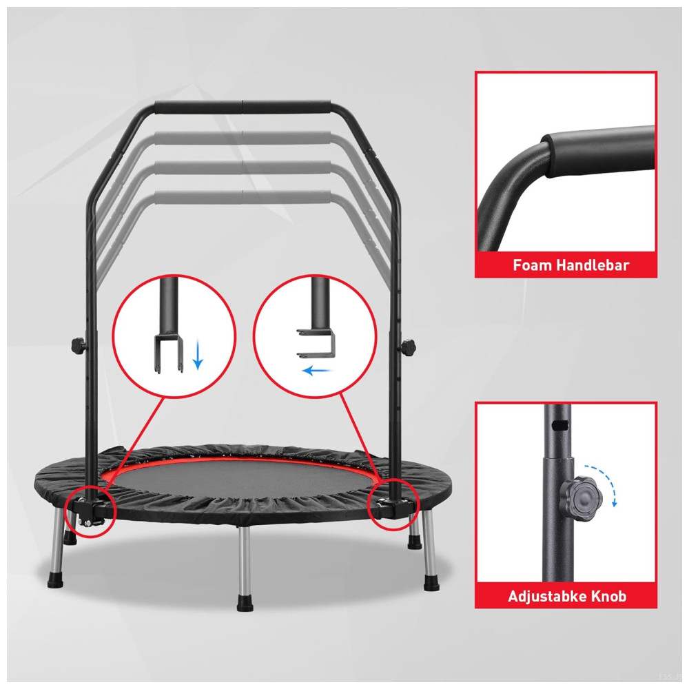 40 por 48 mini trampolim para adultos e crianças exercitam rebote com barra ajustável de fitness trampoline