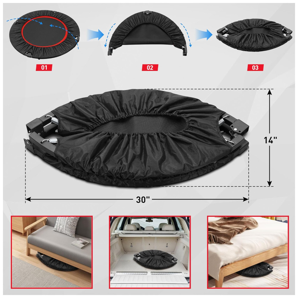 A tampa da estrutura também é acolchoada, proporcionando uma superfície de salto melhor dobrável e projetada para encaixar pequenos espaços na academia ou em casa