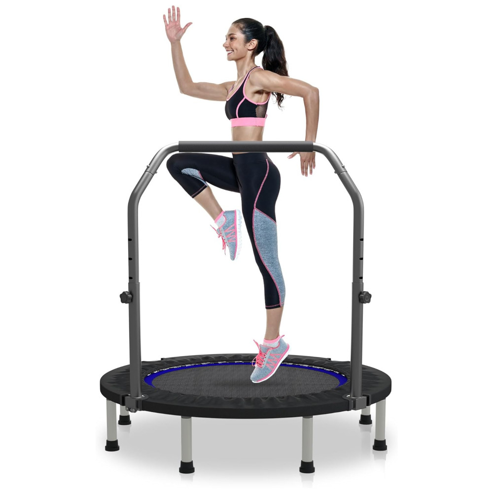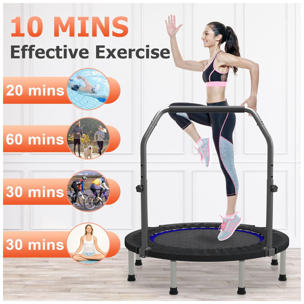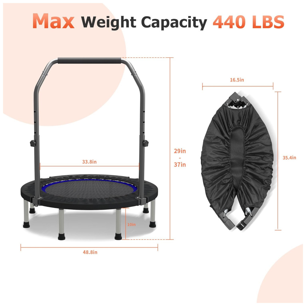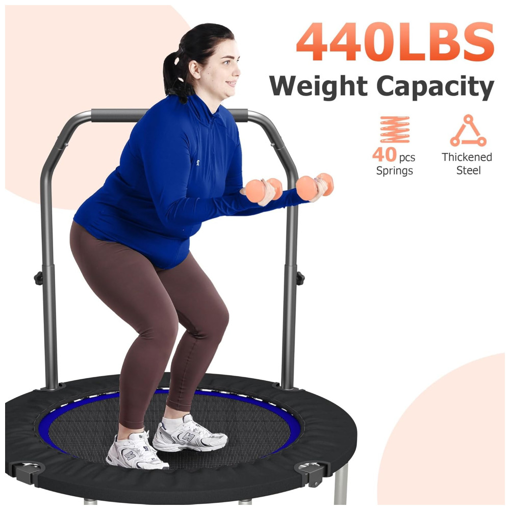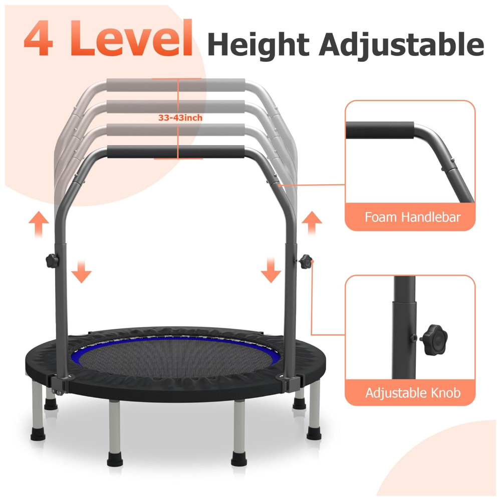 Mini Trampolim Dobrável HYD-Parts 48″ 4 Alturas Ajustáveis Macio Estrutura Aço Inoxidável Suporte Até 200 kg Azul