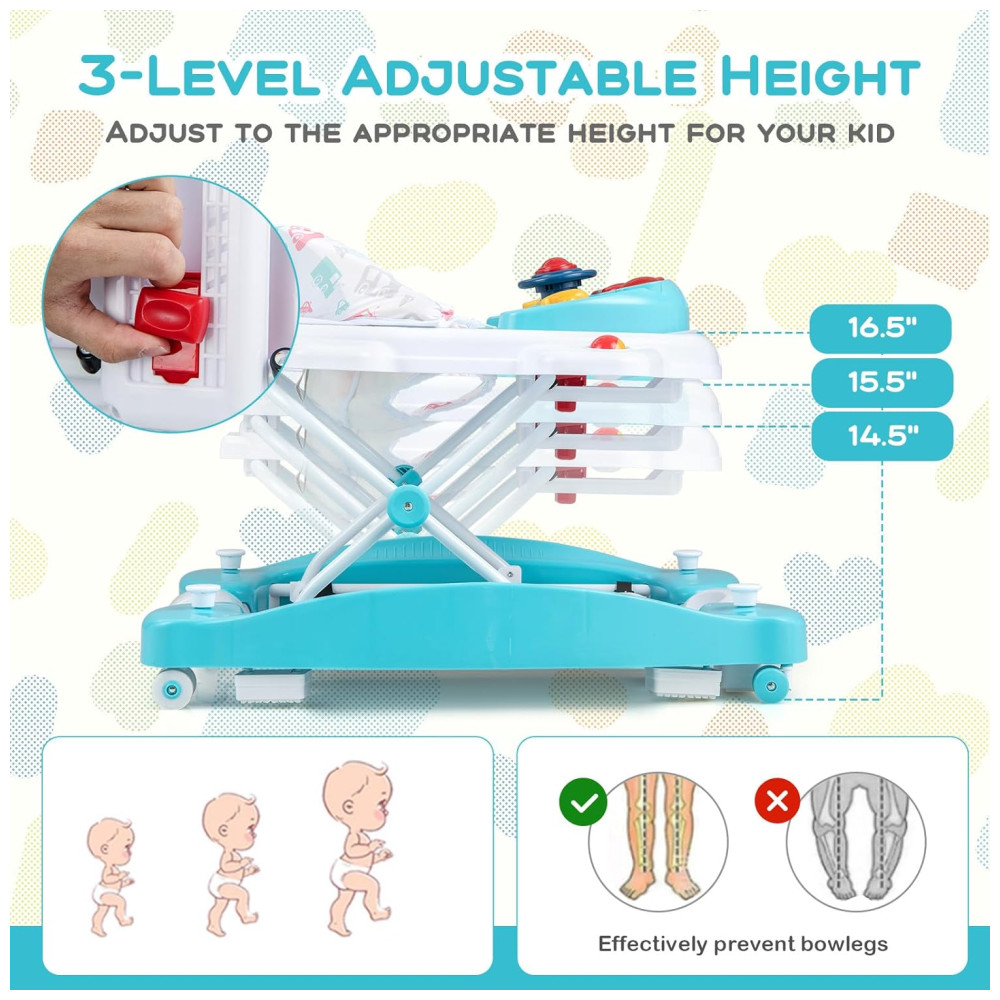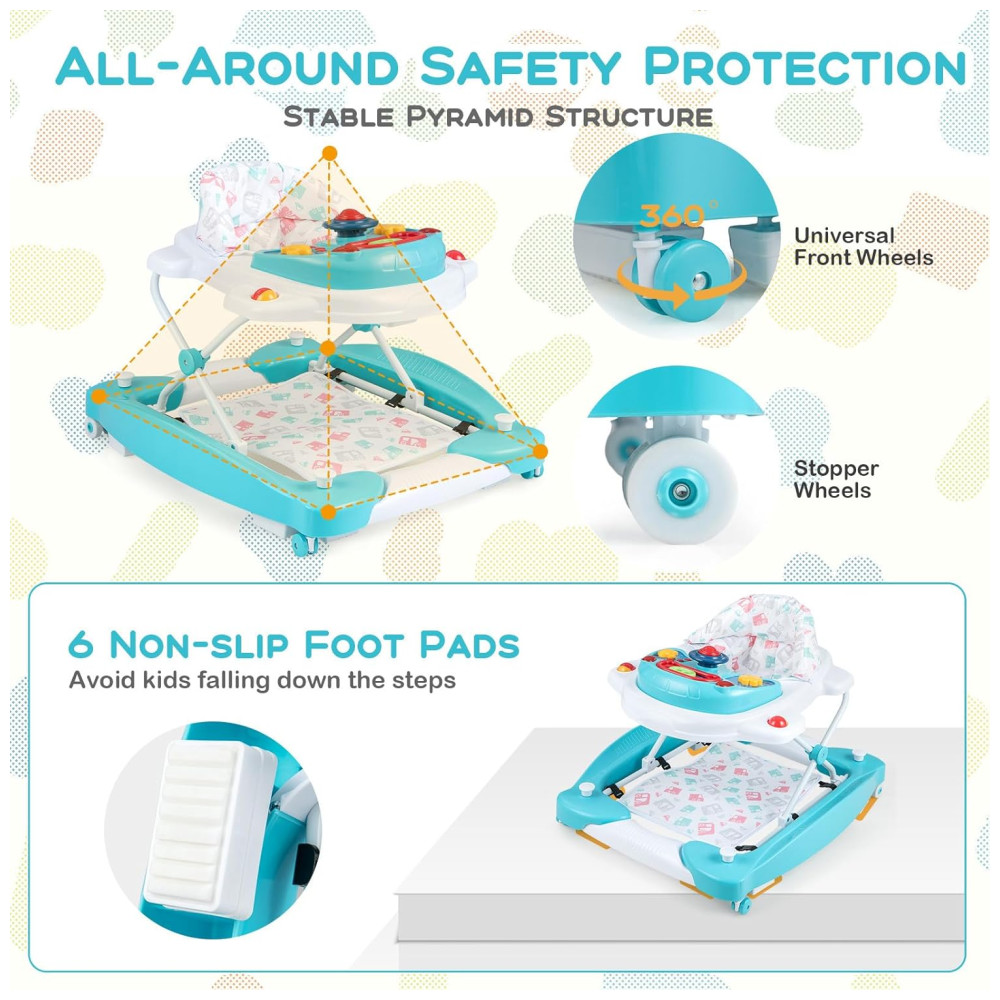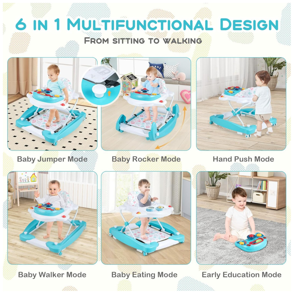6 em 1 Baby Walker. Baby Walker com rodas. Altura ajustável. Música. Luzes. Modo de balancim. Baby Activity Walker
