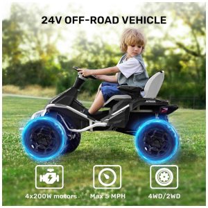 Quadriciclo Elétrico infantil 4×4 24V com Controle Remoto para Pais até 72 km/h ANPABO Branco