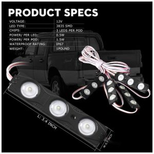 Luz LED Automotiva Decorativa Interna Externa 8 Peças à Prova Dágua Marcador Lateral
