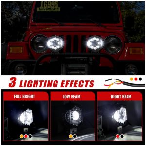 Farol de Milha LED Off Road Âmbar com 5100 Lúmens e Luz Branca IP68 12V 24V 80W 2Un Aaiwa
