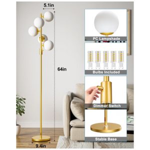 Luminária de chão dourada dimerizável ACOHOOK 5 globos 163m LED 3000K 110V