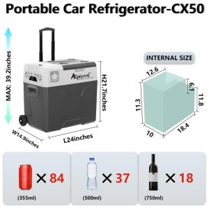 Geladeira Portátil 50L para Carros Barco Caminhão e Acampamento 12 24 V DC Alpicool X50 Cinza