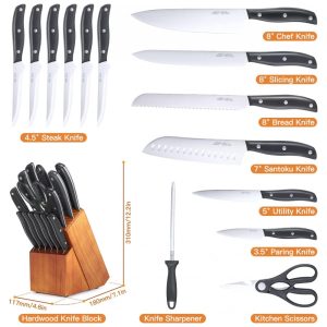 Conjunto de Facas em Aço Inoxidável com Bloco de Bancada e Afiador Embutido 15 Peças Aoresac Preto