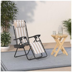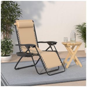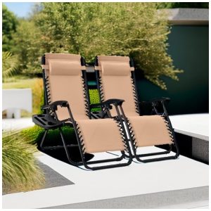 Conjunto de 2 Cadeiras Reclináveis de Aço com Sistema Zero Gravity da Best Choice Products – Bege