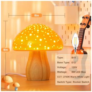 BOHON Luminária Cogumelo de Cerâmica Retrô para Mesa de Cabeceira com LED 2700K – Laranja Vibrante
