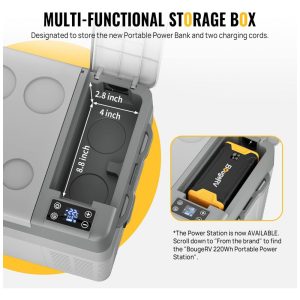 Geladeira e Congelador Portátil 38 L com Compressor 12 24V DC 110 240 Volts AC BougeRV Preto