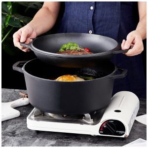Panela de Ferro Fundido 6L Pré Temperada 3 em 1 com Alça de Metal BRUNTMOR Preto