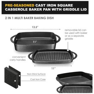 Assadeira de Ferro Fundido 2 em 1 Pré Preparada a Tampa Serve para Grelhar BRUNTMOR Preto