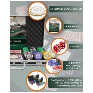 Maleta de Poker com 300 Fichas de Argila Numeradas e Manual de Regas Bullets Preta