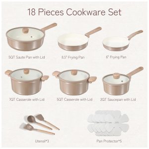 Conjunto de Panelas e Frigideiras Antiaderentes de Granito 10 Peças CAROTE C01520 Creme