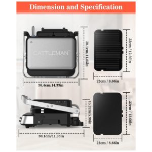 Churrasqueira Elétrica Grill 5 em 1 com Placas Removíveis. 110V 1600W CATTLEMAN CUISINE Prata