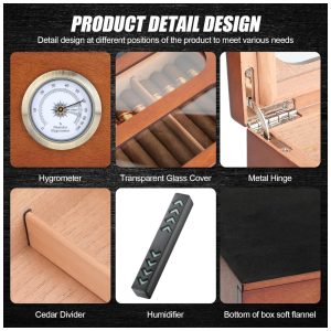 Umidificador de charutos. com gaveta de cedro espanhol higrômetro de precisão 2 umidificadores e gaveta para acessórios presente ideal para amantes de charutos