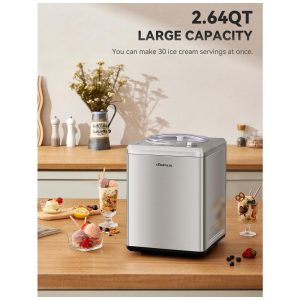 Máquina de Sorvete 25L com 3 Modos Display LCD Temporizador até 2H e Função Keep Cool 110V 250W COUPLUX Prata
