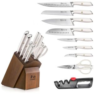 Conjunto de Facas Cangshan 1027532 em Aço Inoxidável com Bloco de Bancada Multinível 10 Peças Branco