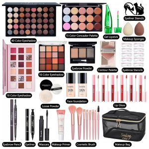 CHAFFUL Kit Completo de Maquiagem Feminina – Conjunto Essencial com Base Primer Paleta de Sombras Contorno Batom Delineador e Pincéis