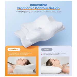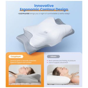 Travesseiro Ortopédico Cervical Ergonôimico Tamanho Queen com Espuma de Memória Cozyplayer Cinza