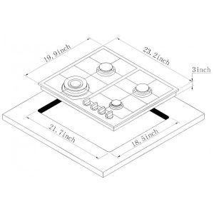 Cooktop a gás 59cm Deli-mate inox 4 queimadores selados 27500BTU dual fuel GN/GLP acendimento elétrico 110V