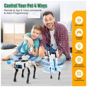 Cachorro robô com garra Dingdongwu 30 ações controle por voz e controle remoto bateria recarregável