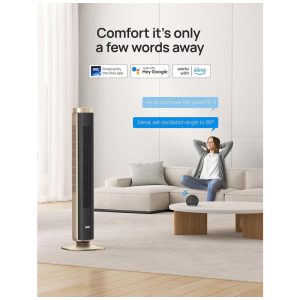 Ventilador de Torre de Alta Velocidade com Controle Remoto e WiFi 110V Dreo Preto e Dourado