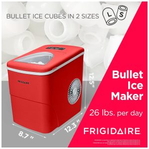 Máquina de Gelo Portátil Produz 12kg Dia 9 Cubos 6 12min 110v FRIGIDAIRE EFIC108 RED Vermelho