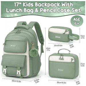 Mochila escolar Fimibuke rosa 3 em 1 com lancheira térmica e estojo para notebook até 156″