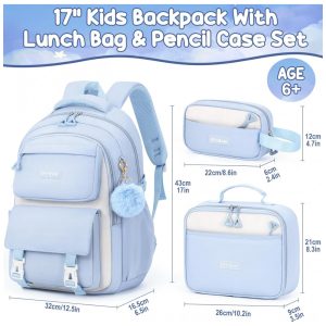 Mochila escolar Fimibuke azul 3 em 1 com lancheira térmica e estojo para notebook até 156″