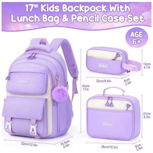 Mochila escolar Fimibuke roxa 3 em 1 com lancheira térmica e estojo para notebook até 156″