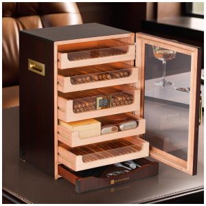 Umidor de Charutos GLENCREAG MET1031 para 100 a 150 Charutos Revestimento em Cedro Espanhol Porta Magnética 31 Gavetas Grandes