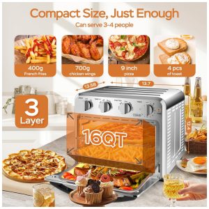 Forno Elétrico de Bancada 16 Litros com 5 Funções Incluindo Air Fryer 110V 1500W Geek Chef Prata