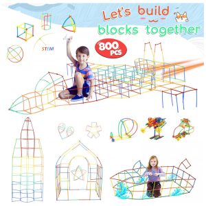 Brinquedo de construção STEM com canudos Ggiibro 800 peças tubos plásticos interligáveis