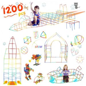 Brinquedo de construção STEM com canudos Ggiibro 1200 peças tubos plásticos interligáveis