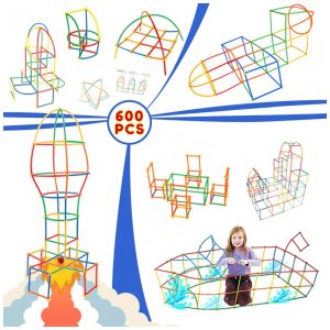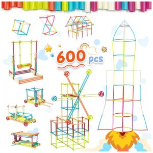 Brinquedo de construção STEM com canudos Ggiibro 600 peças tubos plásticos interligáveis