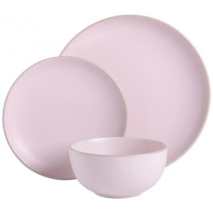 Aparelho de Jantar com 12 Peças em Cerâmica Serve 4 Pessoas Gibson Home Rockaway Rosa