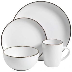 Aparelho de Jantar com 16 Peças em Cerâmica Stoneware Serve 4 Pessoas Gibson Home Rockaway Branco